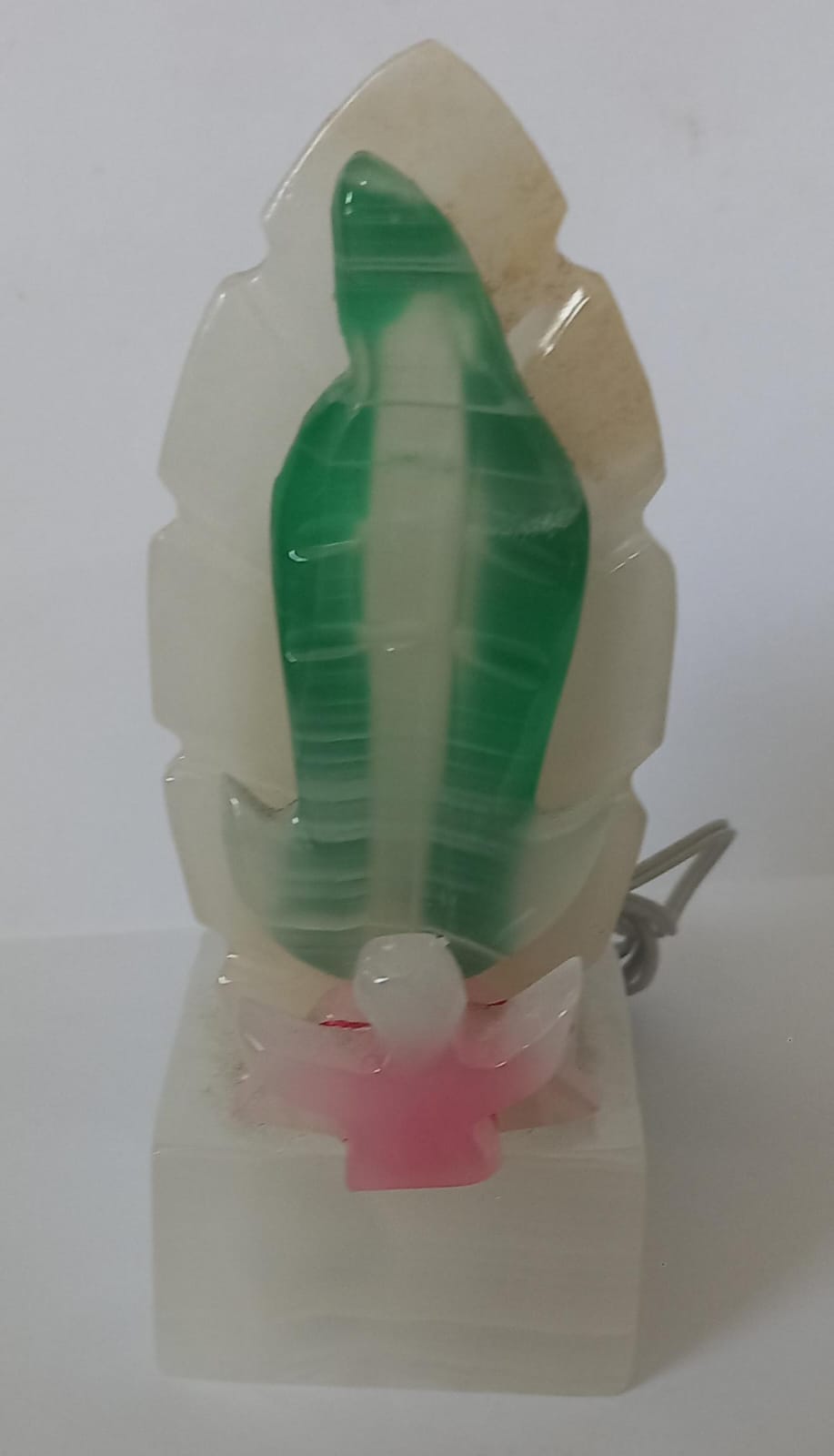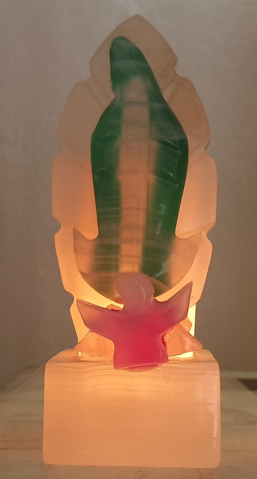 Ilumina tu fe y tu hogar con esta hermosa lámpara de la Virgen de Guadalupe. Tallada en auténtico Ónix Blanco, esta pieza no es solo un objeto decorativo, sino un símbolo de protección y esperanza. Su diseño destaca por el detalle de los colores verde, blanco y rojo, rindiendo un emotivo homenaje a las raíces mexicanas y a la “Reina de México”.